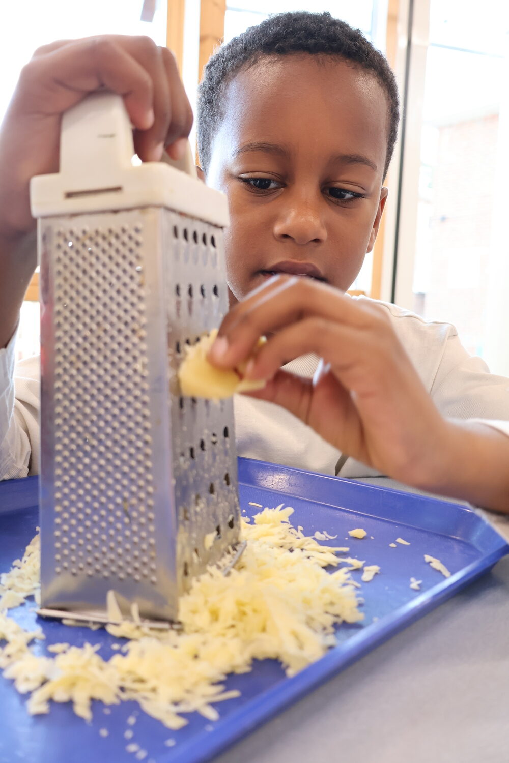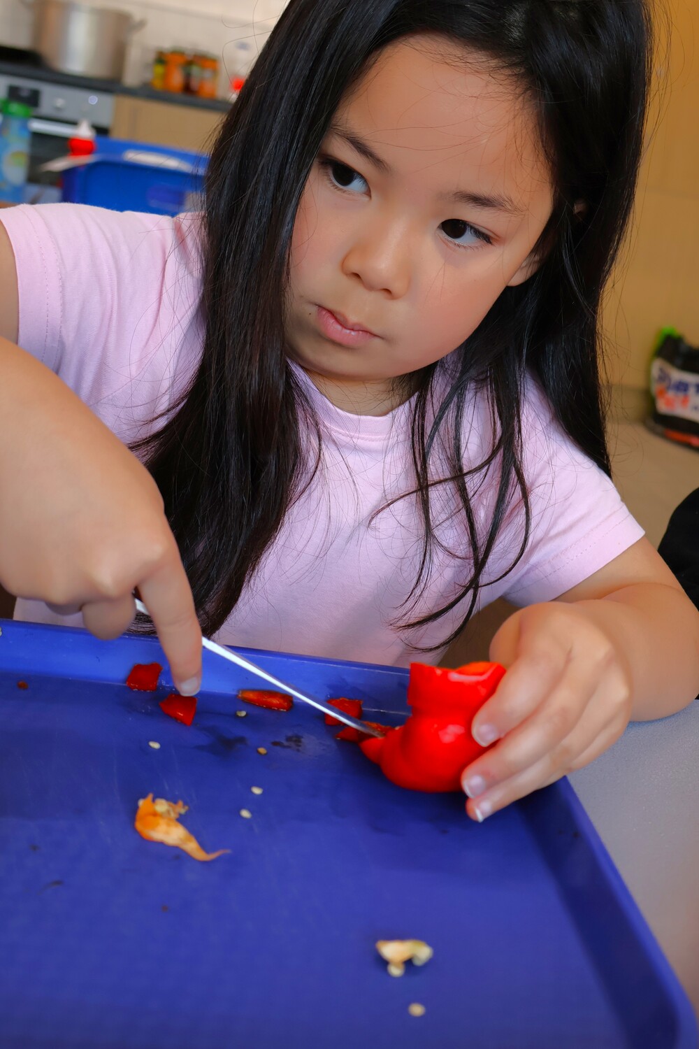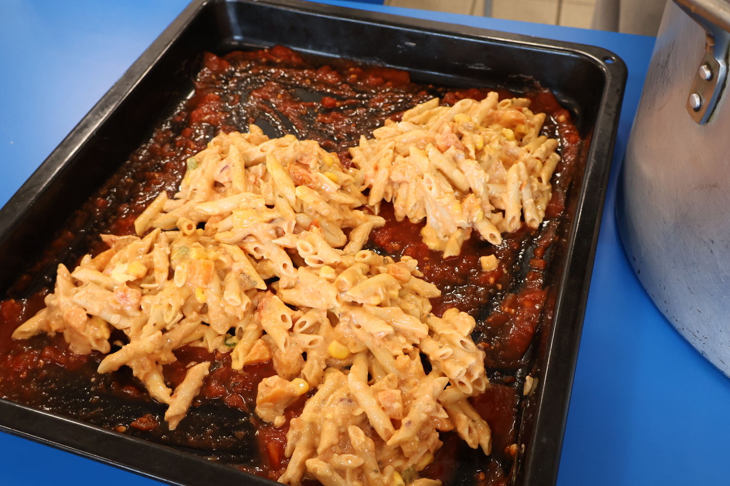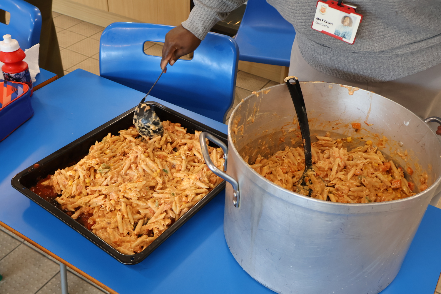 Today in the cooking club kitchen, our budding chefs got their sleeves rolled up, ready to get started in preparing all of the delicious vegetables for our fabulous pasta bake packed with nutritious wholewheat pasta, beautifully diced veggies, and of course, lots of delicious cheese!!!