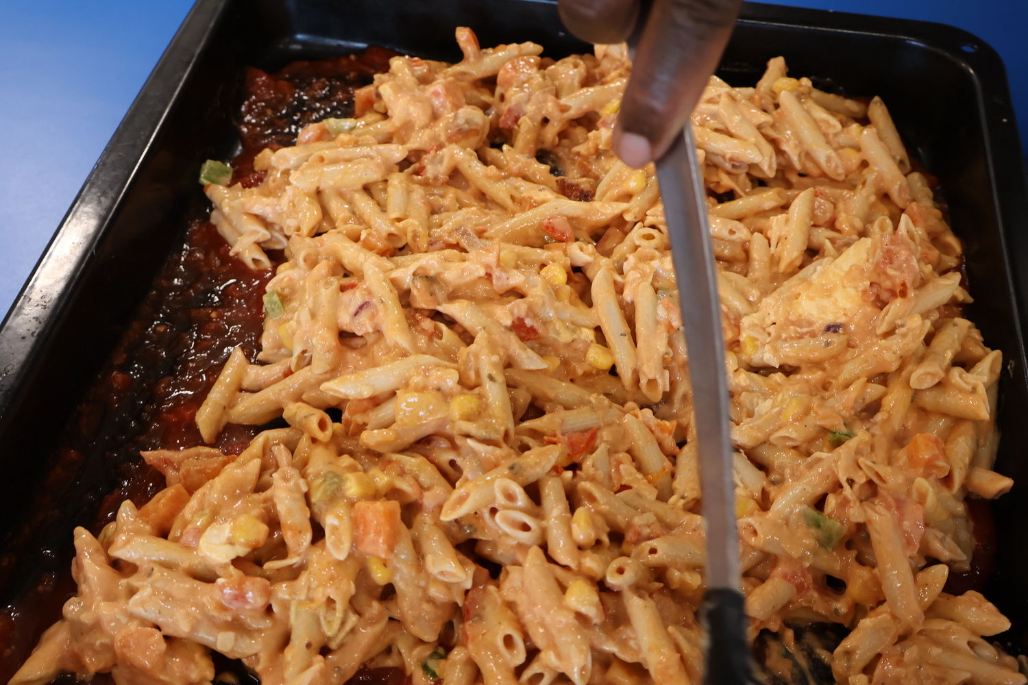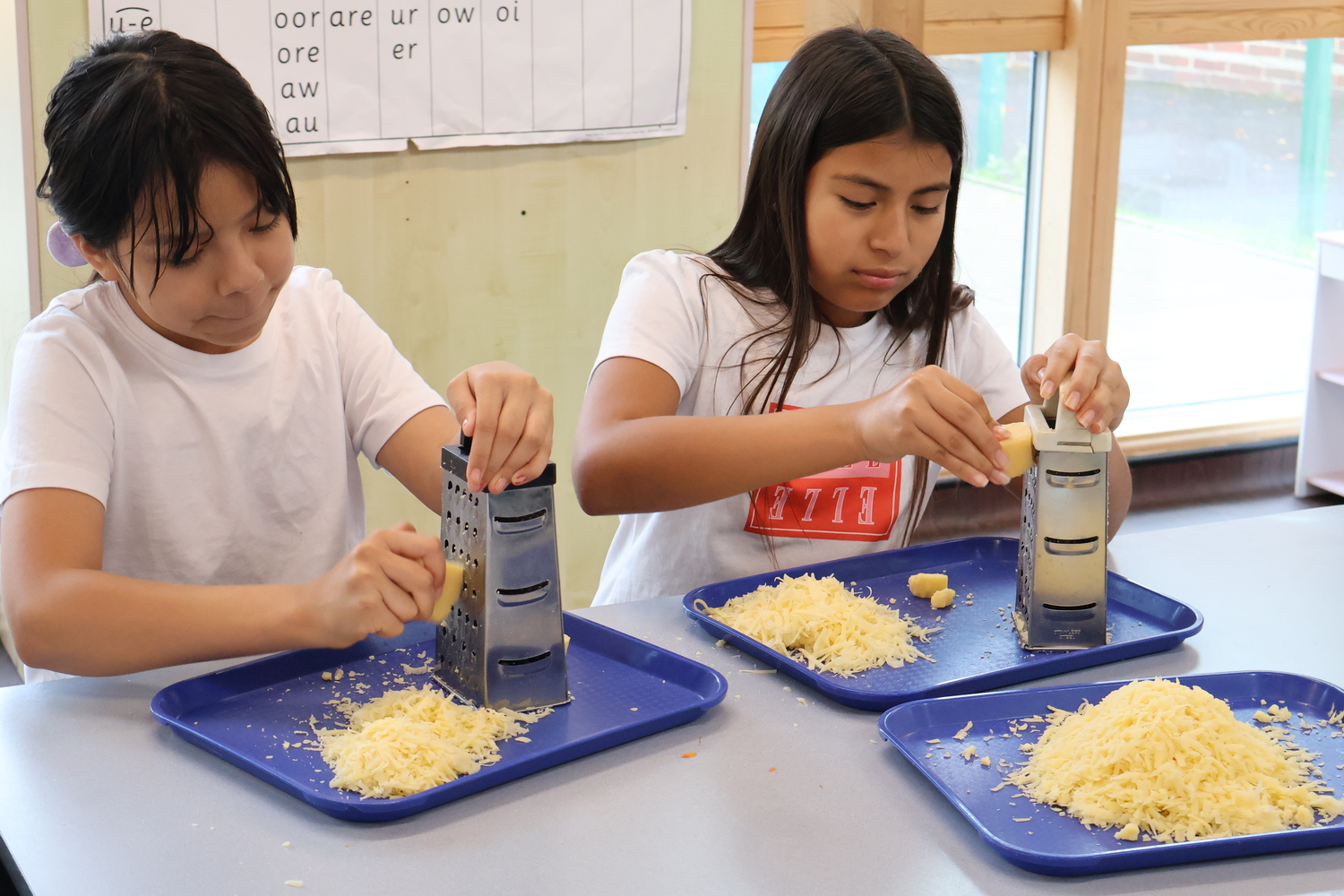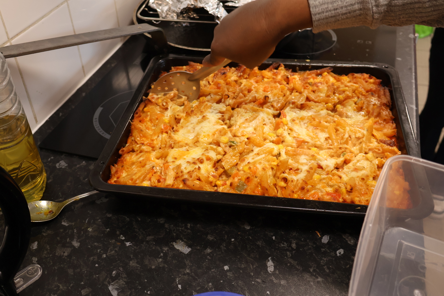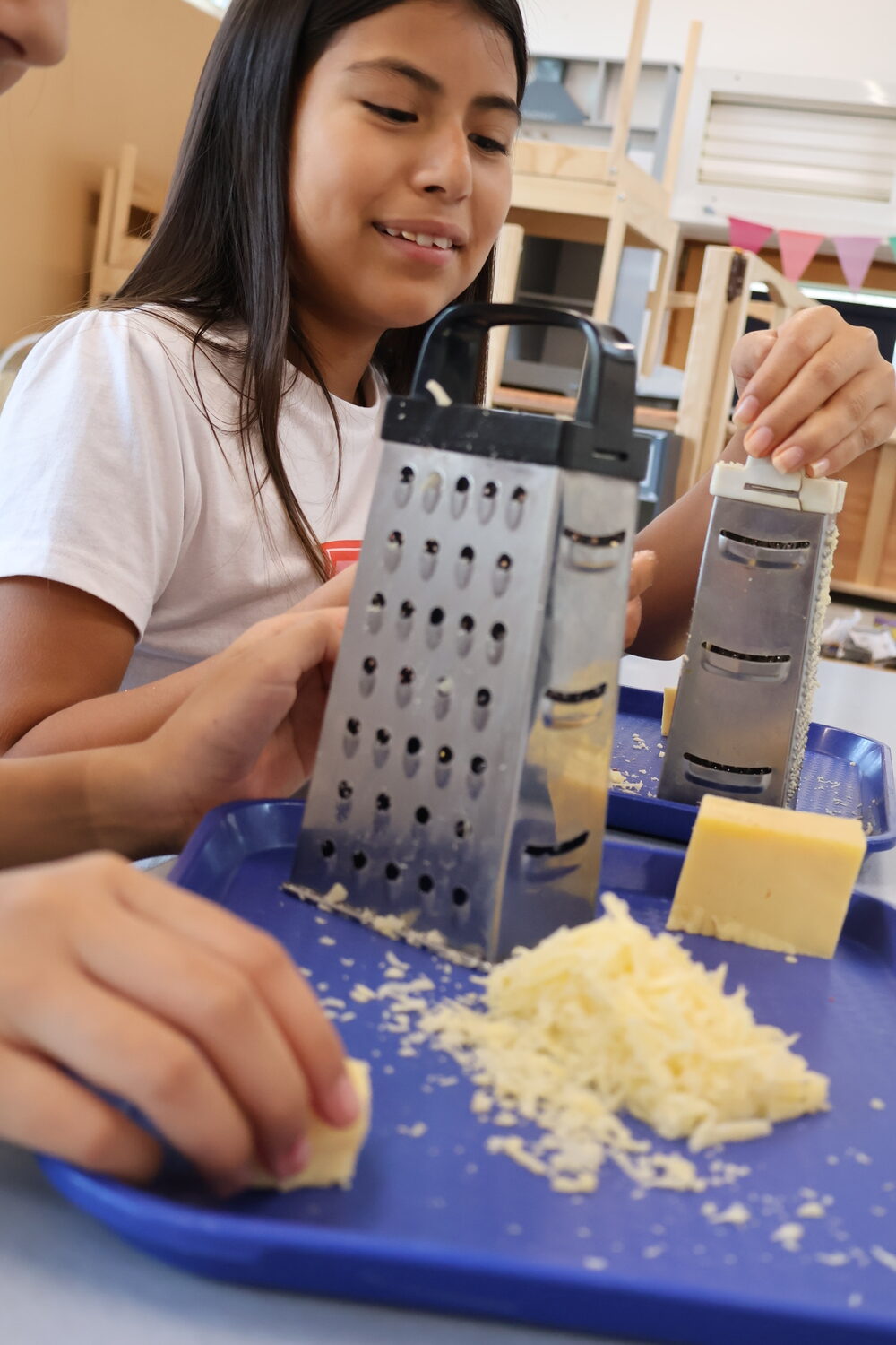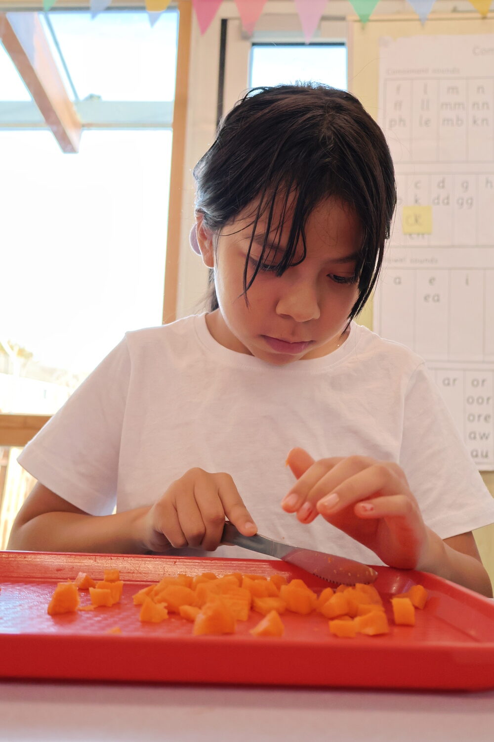 Today in the cooking club kitchen, our budding chefs got their sleeves rolled up, ready to get started in preparing all of the delicious vegetables for our fabulous pasta bake packed with nutritious wholewheat pasta, beautifully diced veggies, and of course, lots of delicious cheese!!!
