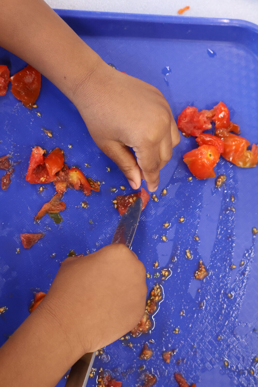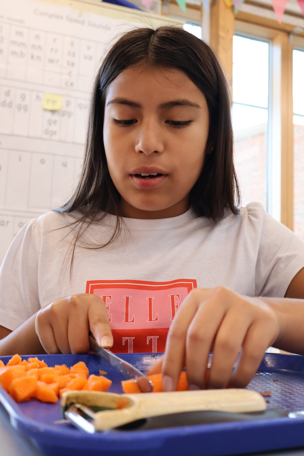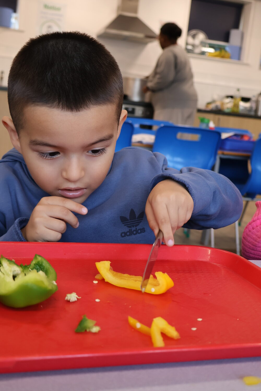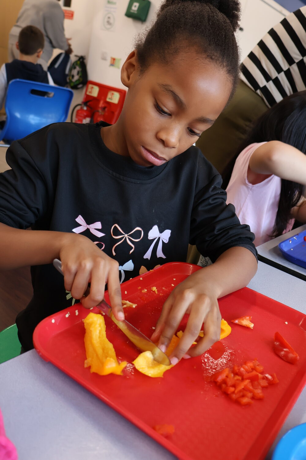Today in the cooking club kitchen, our budding chefs got their sleeves rolled up, ready to get started in preparing all of the delicious vegetables for our fabulous pasta bake packed with nutritious wholewheat pasta, beautifully diced veggies, and of course, lots of delicious cheese!!!