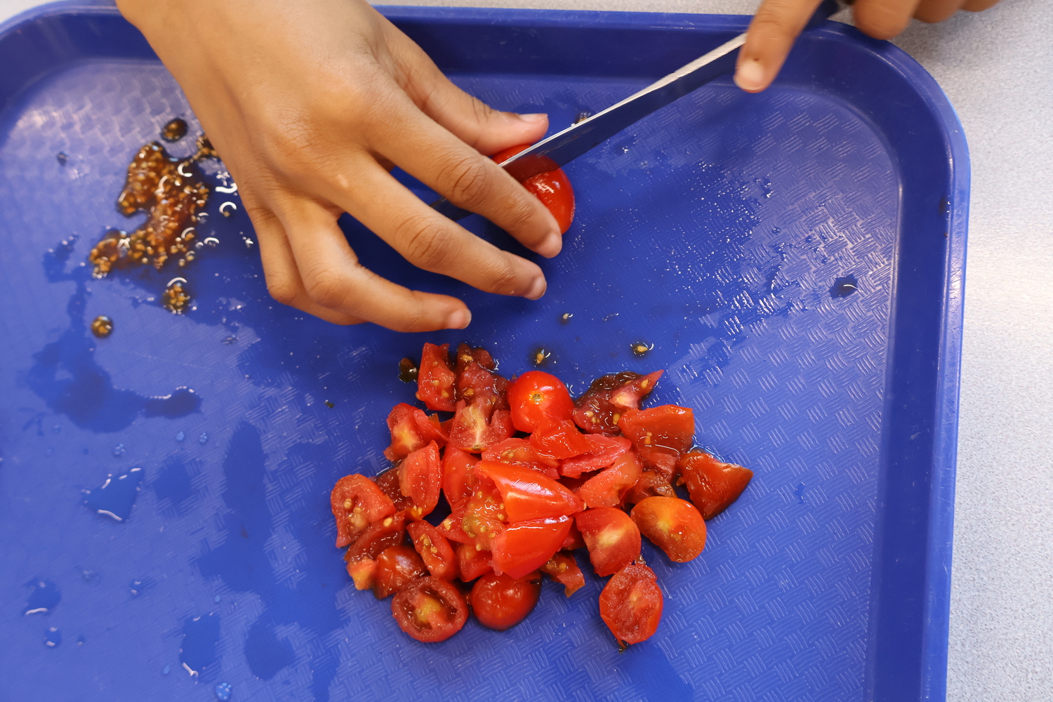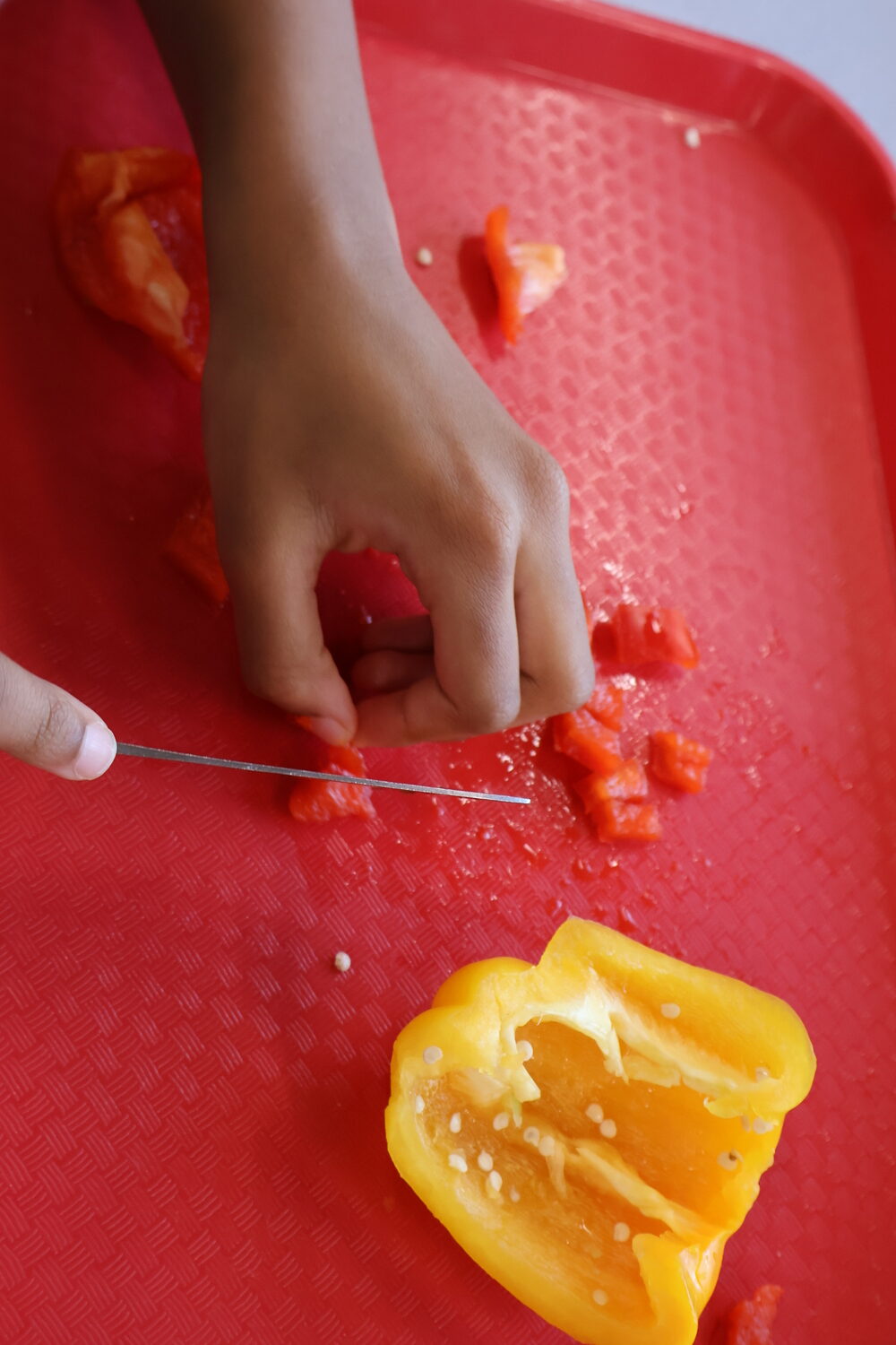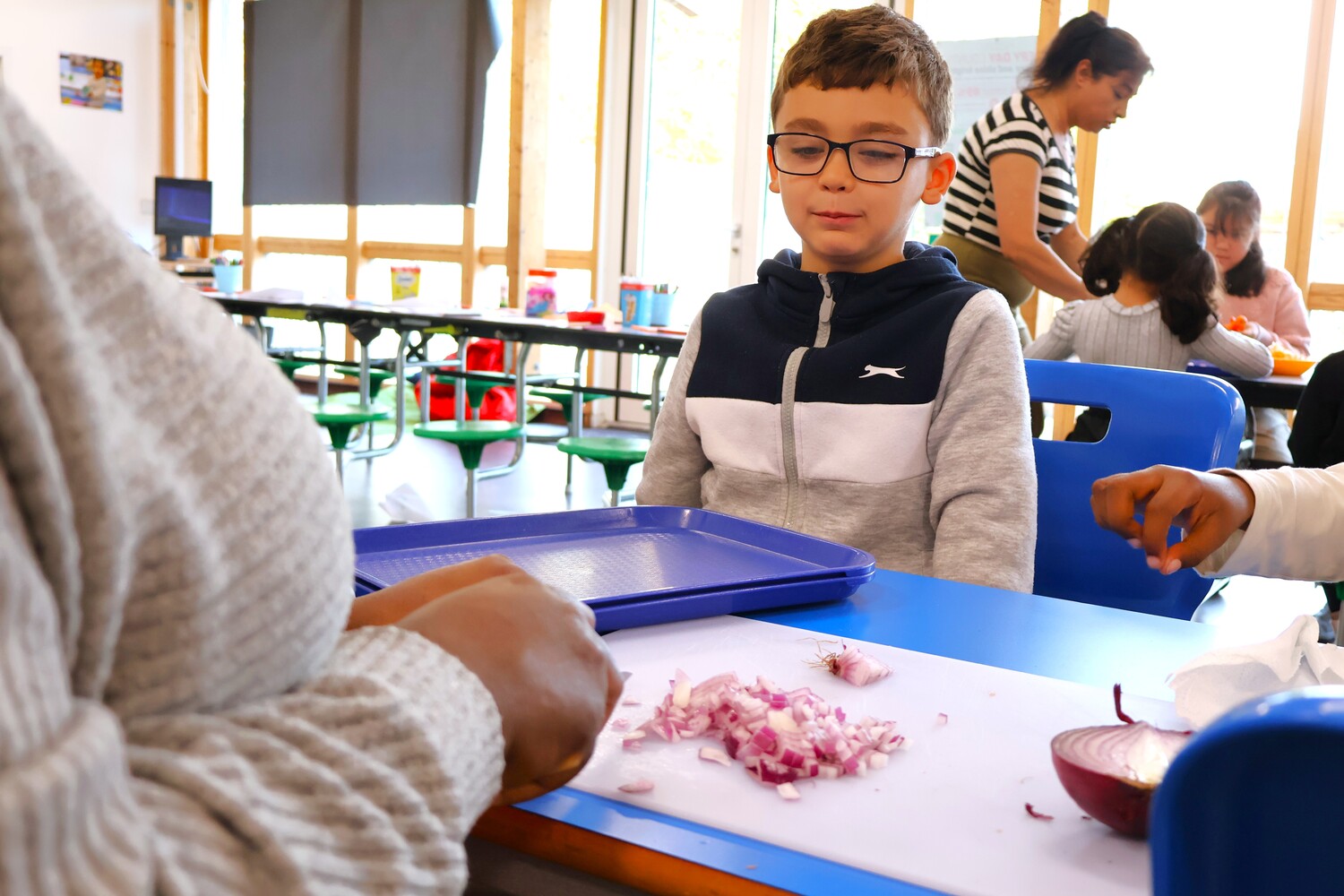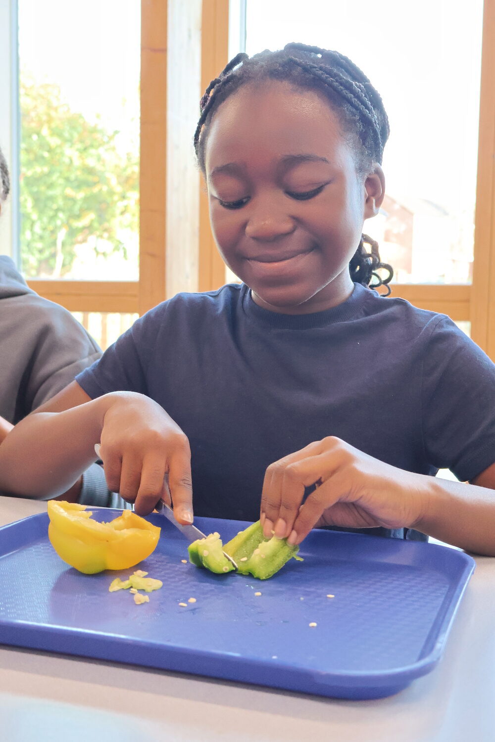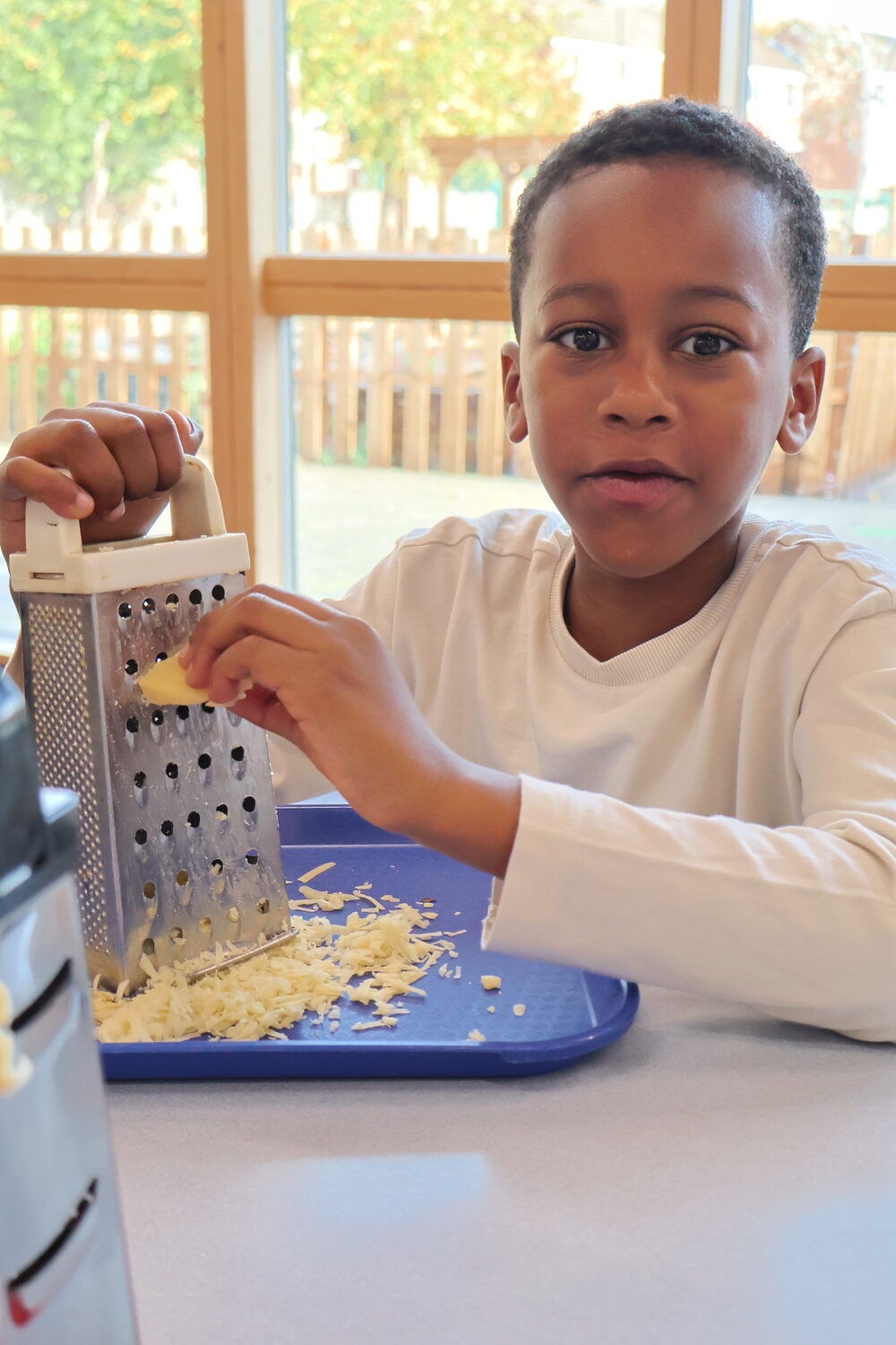 Today in the cooking club kitchen, our budding chefs got their sleeves rolled up, ready to get started in preparing all of the delicious vegetables for our fabulous pasta bake packed with nutritious wholewheat pasta, beautifully diced veggies, and of course, lots of delicious cheese!!!