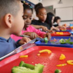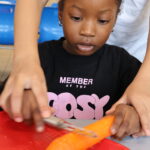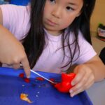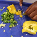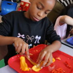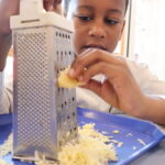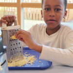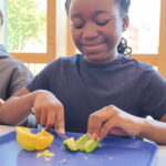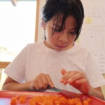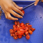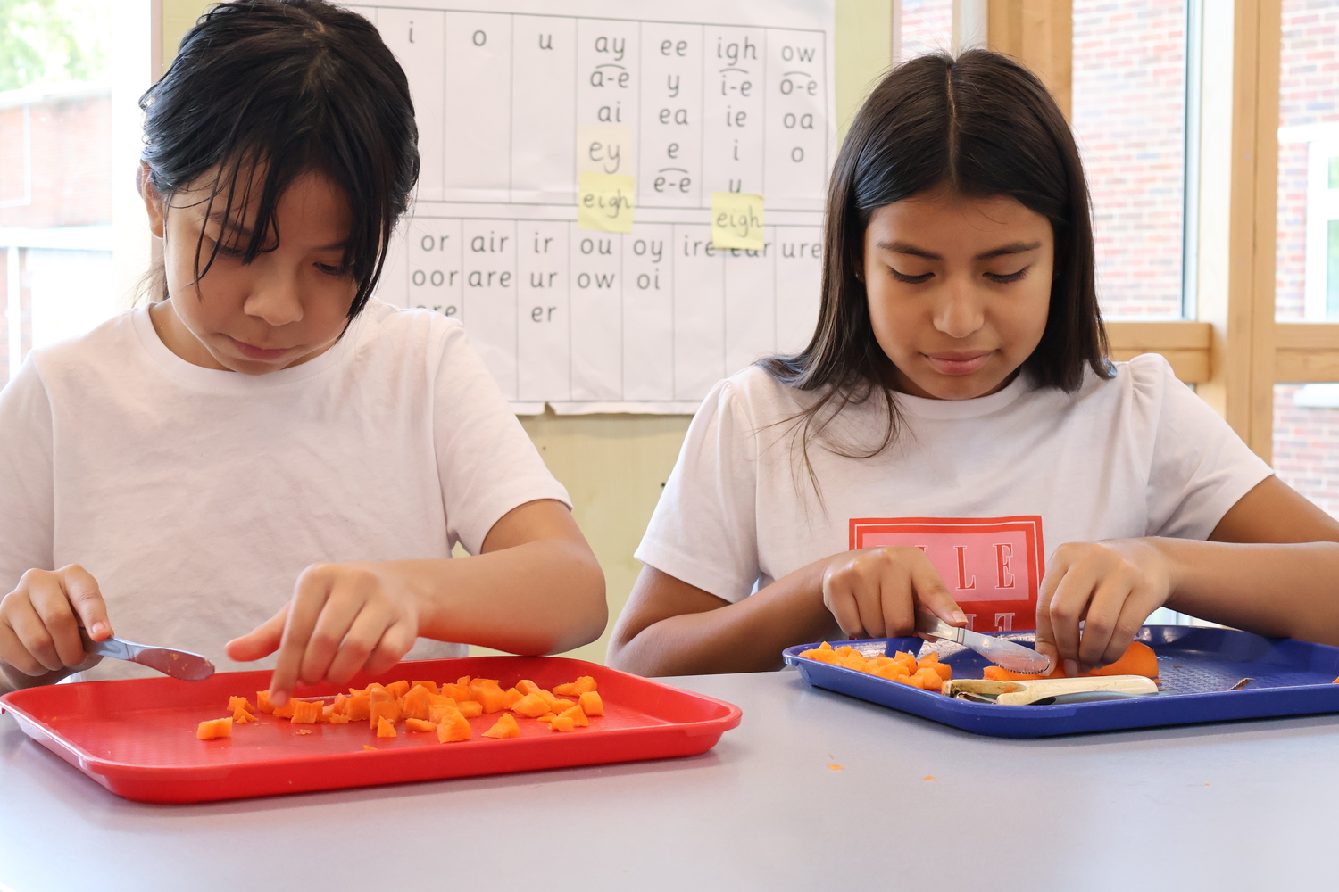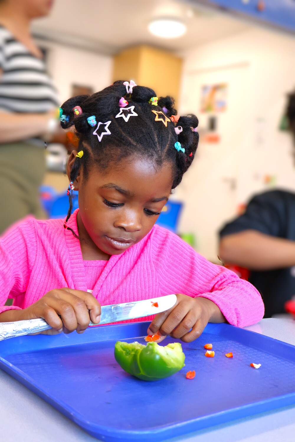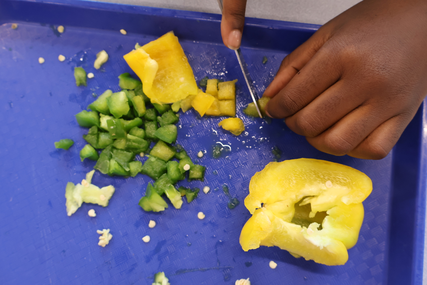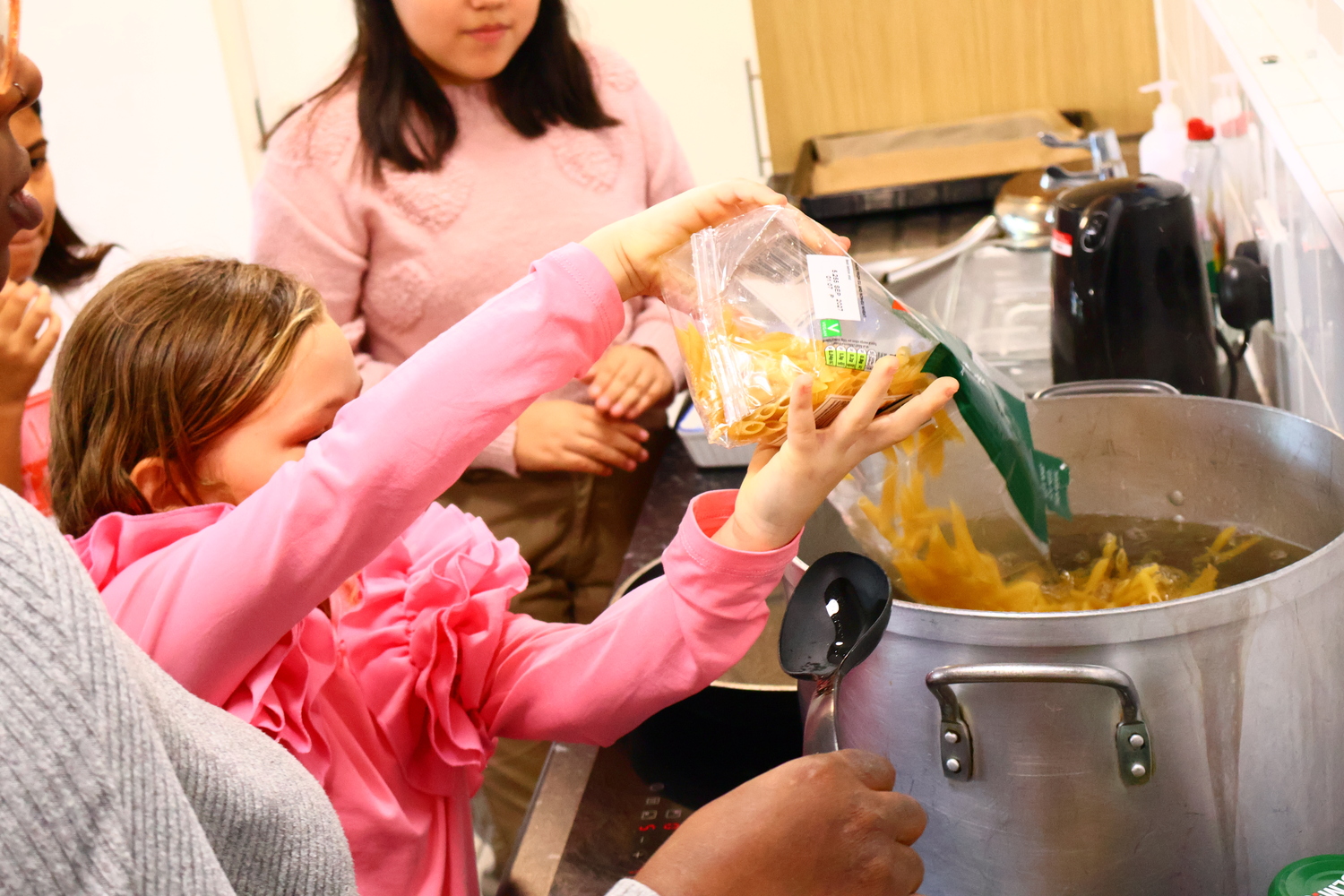 Today in the cooking club kitchen, our budding chefs got their sleeves rolled up, ready to get started in preparing all of the delicious vegetables for our fabulous pasta bake packed with nutritious wholewheat pasta, beautifully diced veggies, and of course, lots of delicious cheese!!!