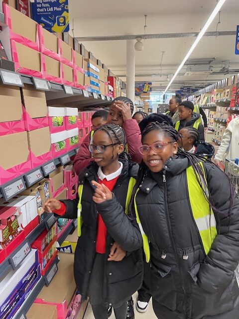 On Monday, a group of the school council were given the opportunity to take a behind the scenes look at the new Lidl on the Walworth Road prior to opening. We looked at the different parts of the shop including the bakery and freezer. We were given bads of produce to take home as well as name badges, sunglasses and a fan!
