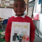 We investigate the patterns, colours and shapes we can see. We are creating a peg doll using fabrics and wool for the hair, which links to our DT unit in year 1 and the learning this term about toys in EYFS. The children design their own outfit and hairstyle, before adding facial features and arms using pipe cleaners.